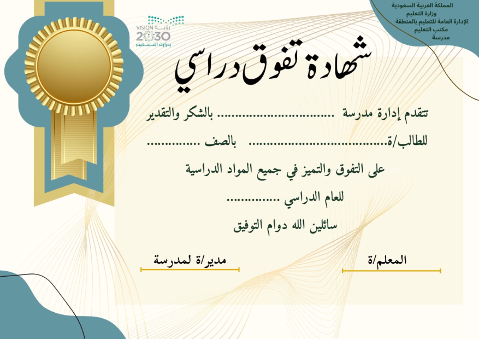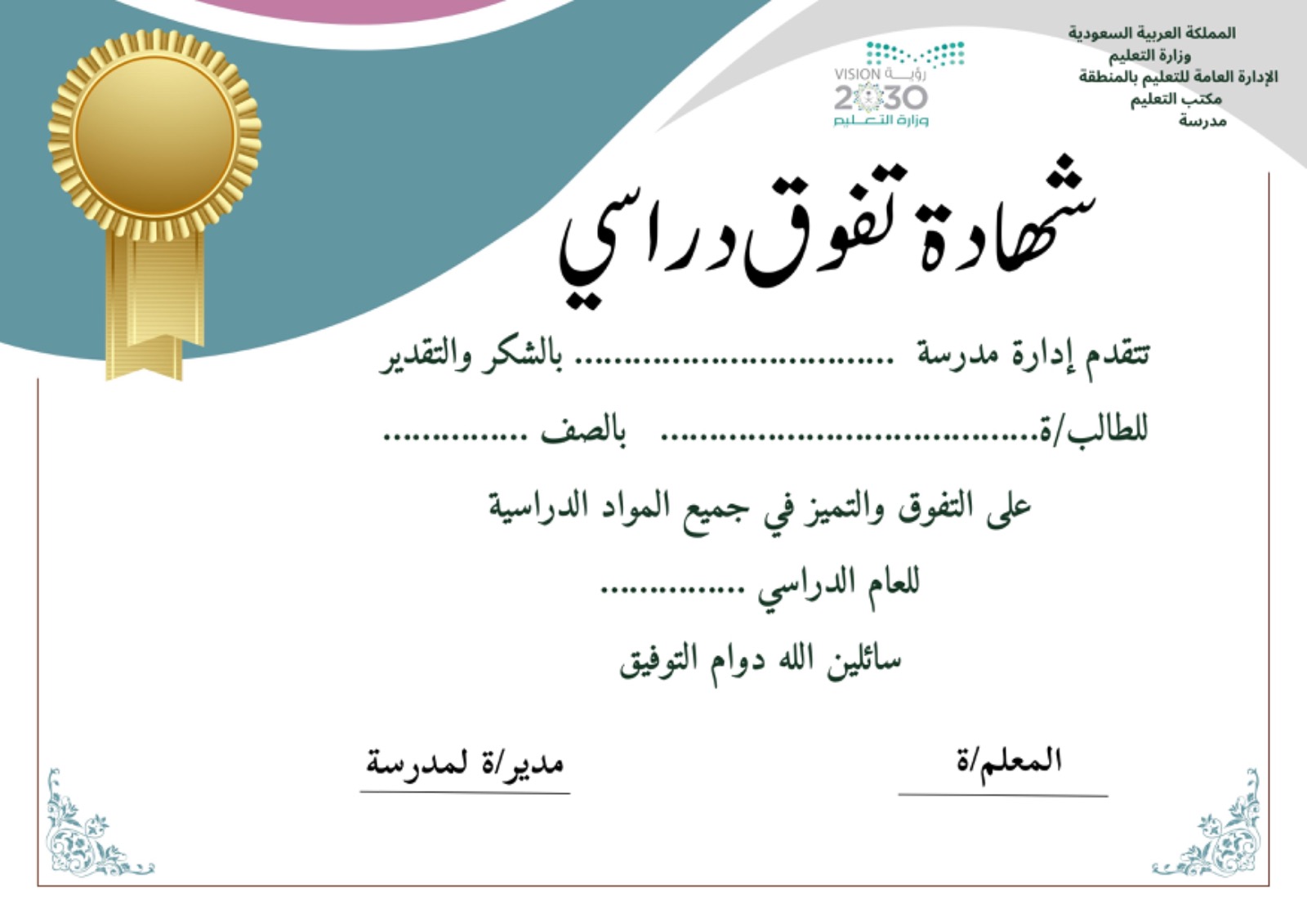 شهادة تفوق دراسي للطالبات نموذج1