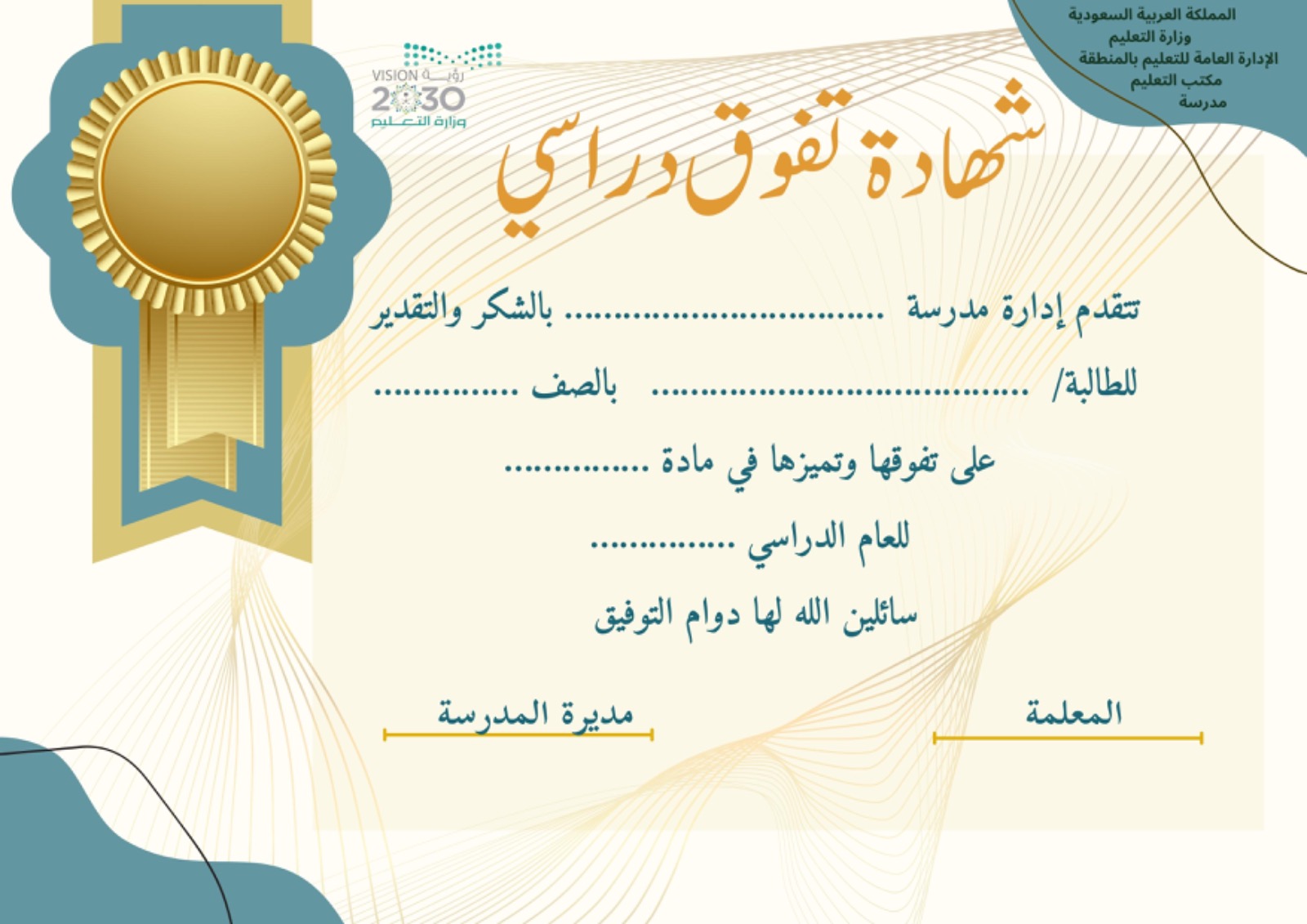 شهادة تفوق دراسي للطالبات نموذج3