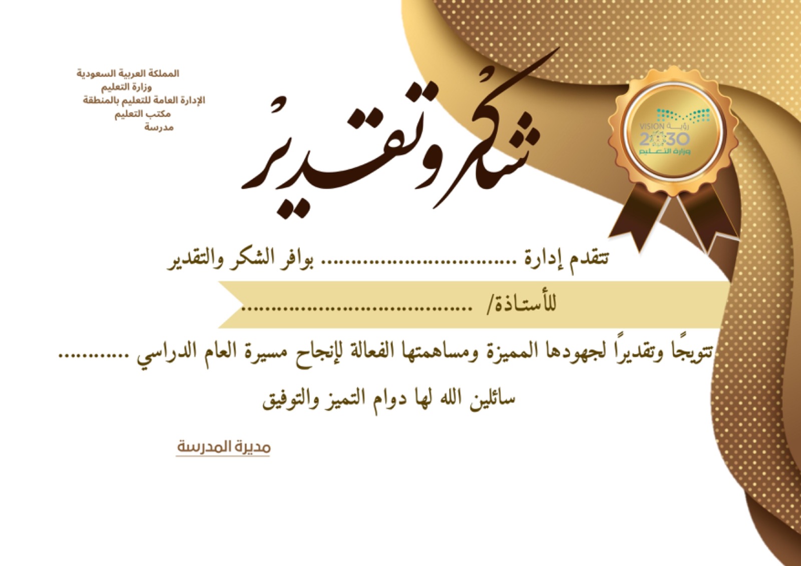 شهادة شكر وتقدير للأستاذات نموذج1